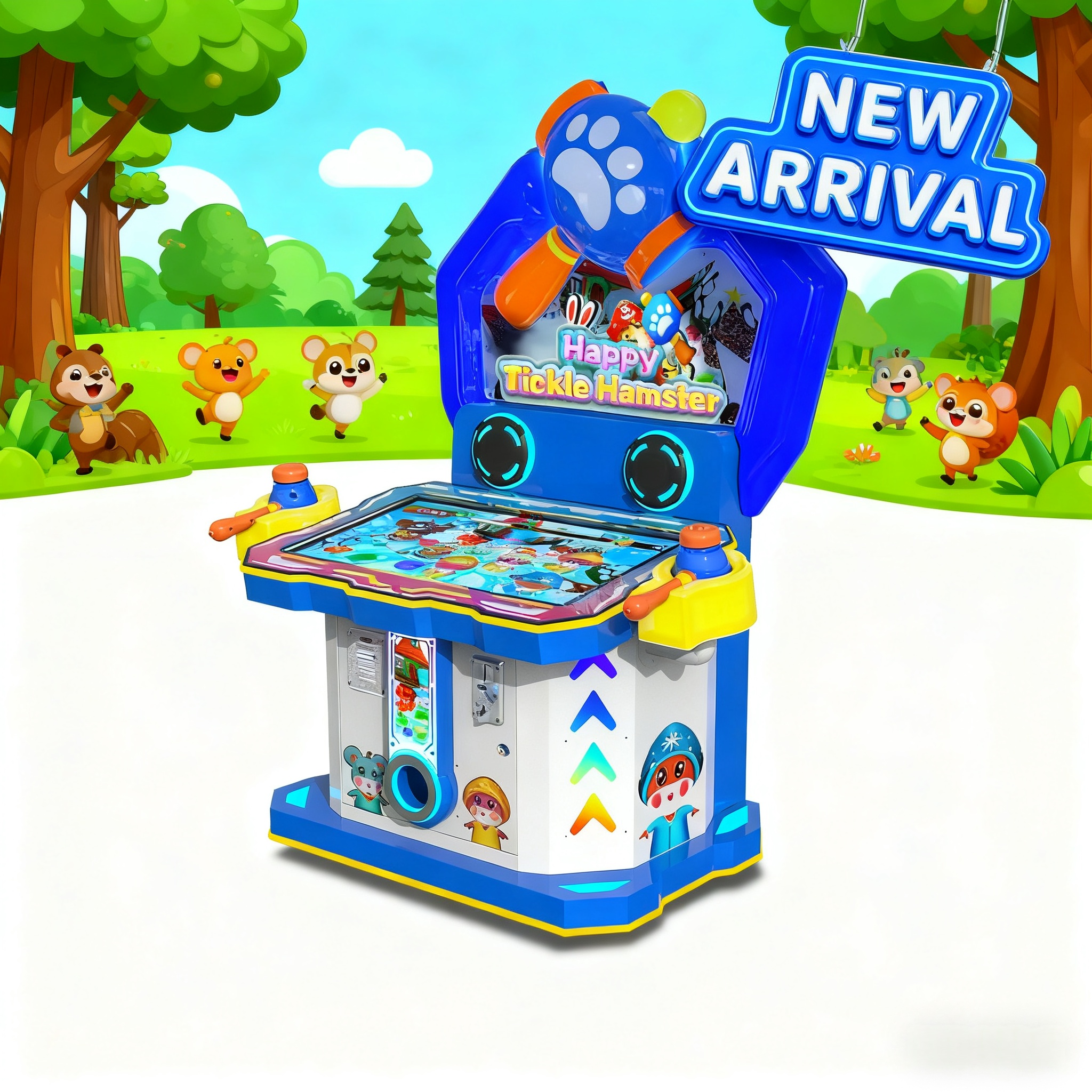 The brand-new Happy Tickle Hamster 8-hole whack-a-mole arcade machine is here! Boasting vibrant graphics, playful hamster characters, and dual controllers for 2-player fun, it turns quick reflexes into giggles. With upbeat audio and colorful lights, this machine is set to become the go-to spot for family and friend competitions at venues—don’t miss the chance to tap into the joy!